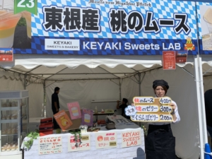 桃のゼリーやムース、独自技術で冷凍したさくらんぼゼリーを販売。たくさんの皆様にご来場お買い上げいただきました。