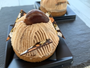 濃厚なマロンクリームをたっぷり使用 隠し味のコーヒーが入った大人の味に仕上げました。1個 400円(税別)